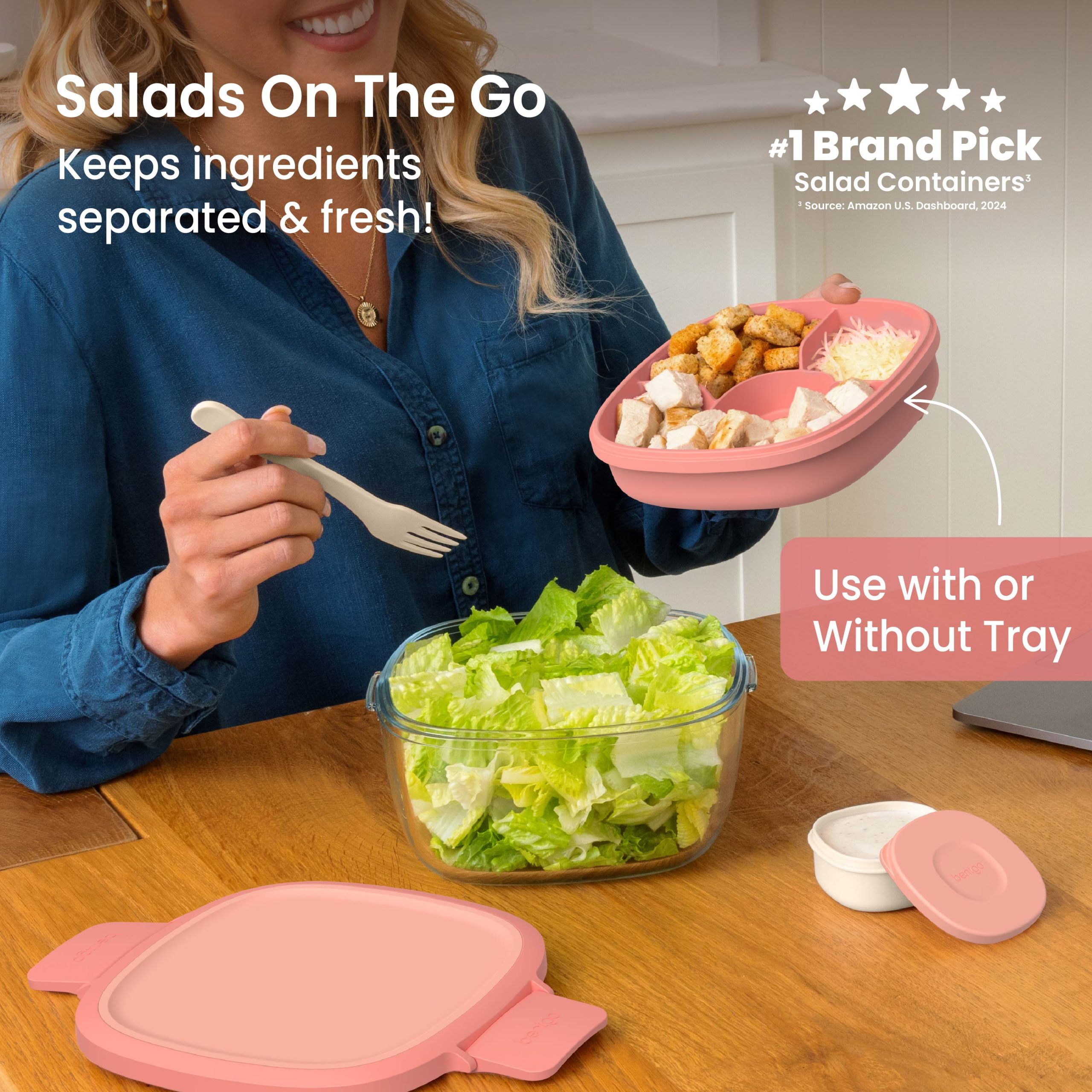 - #1 Brand Pick for Salad Containers: Bentgo is the top choice for salads. lunch boxes. & meal prep containers!* This lightweight and portable salad bowl features a spacious 7.6-cup capacity and an airtight lid with secure locking clips to seal in freshness.
