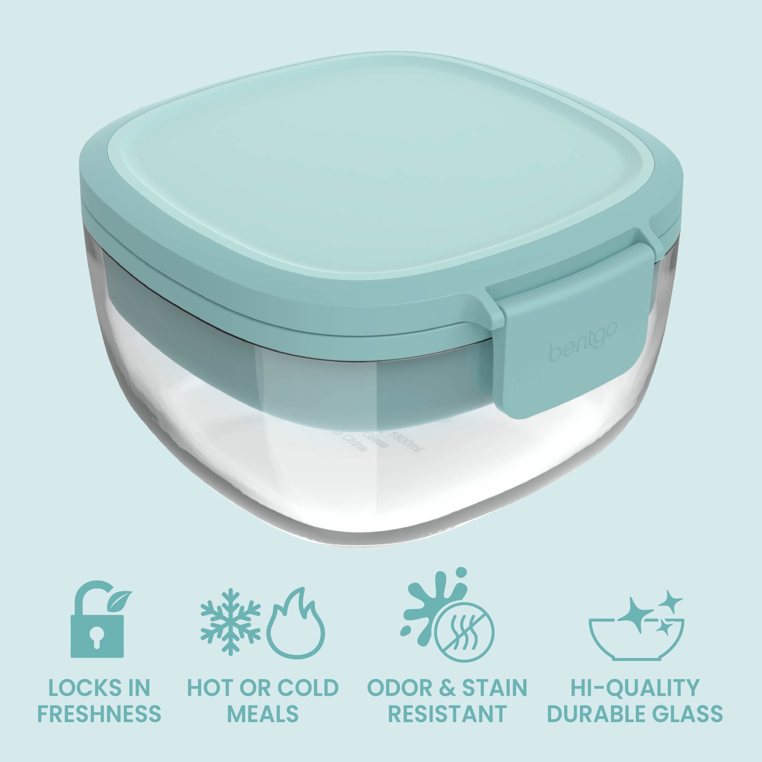 Bentgo Glass Salad Container makes it easy and convenient to eat healthy salads on the go. This all-in-one salad container features an airtight lid in modern colors and durable glass bowl. making it not just functional but also stylish. It’s perfect for transporting your greens. salad toppings. and dressings. ensuring your meals stay fresh and vibrant for pre-prepped lunches at the office. park. or outdoor picnics. Let your imagination run wild when you shake this spacious 7.6 cup glass bowl to mix your salad ingredients. Easily hold a hearty helping of greens. pasta. or fruit?Cmaking it the perfect lunch salad container for adults. All the components of Bentgo Glass Salad Container stack conveniently inside the large salad bowl for easy portability. while a reusable fork stores under the lid for a complete all-in-one meal.