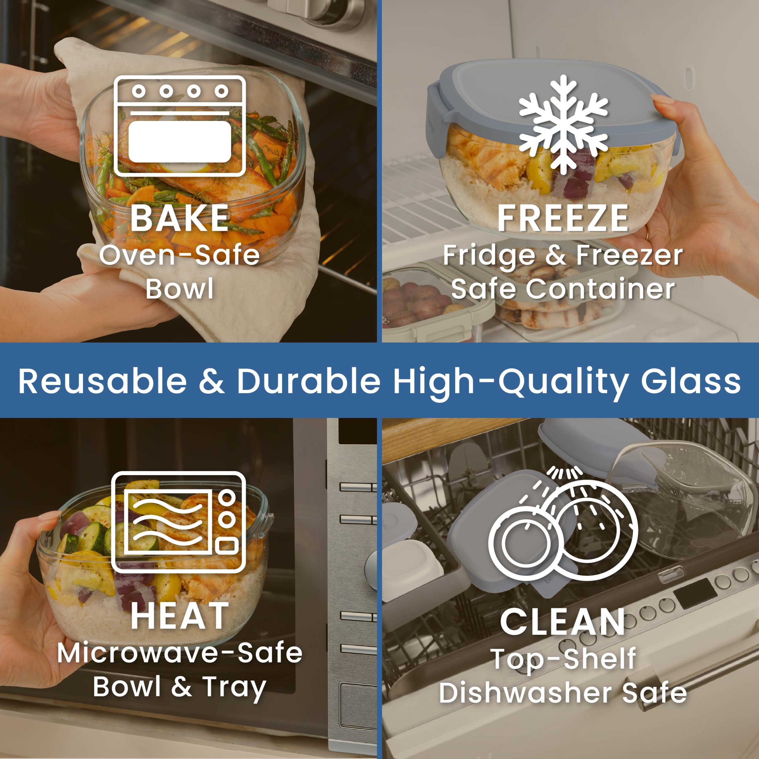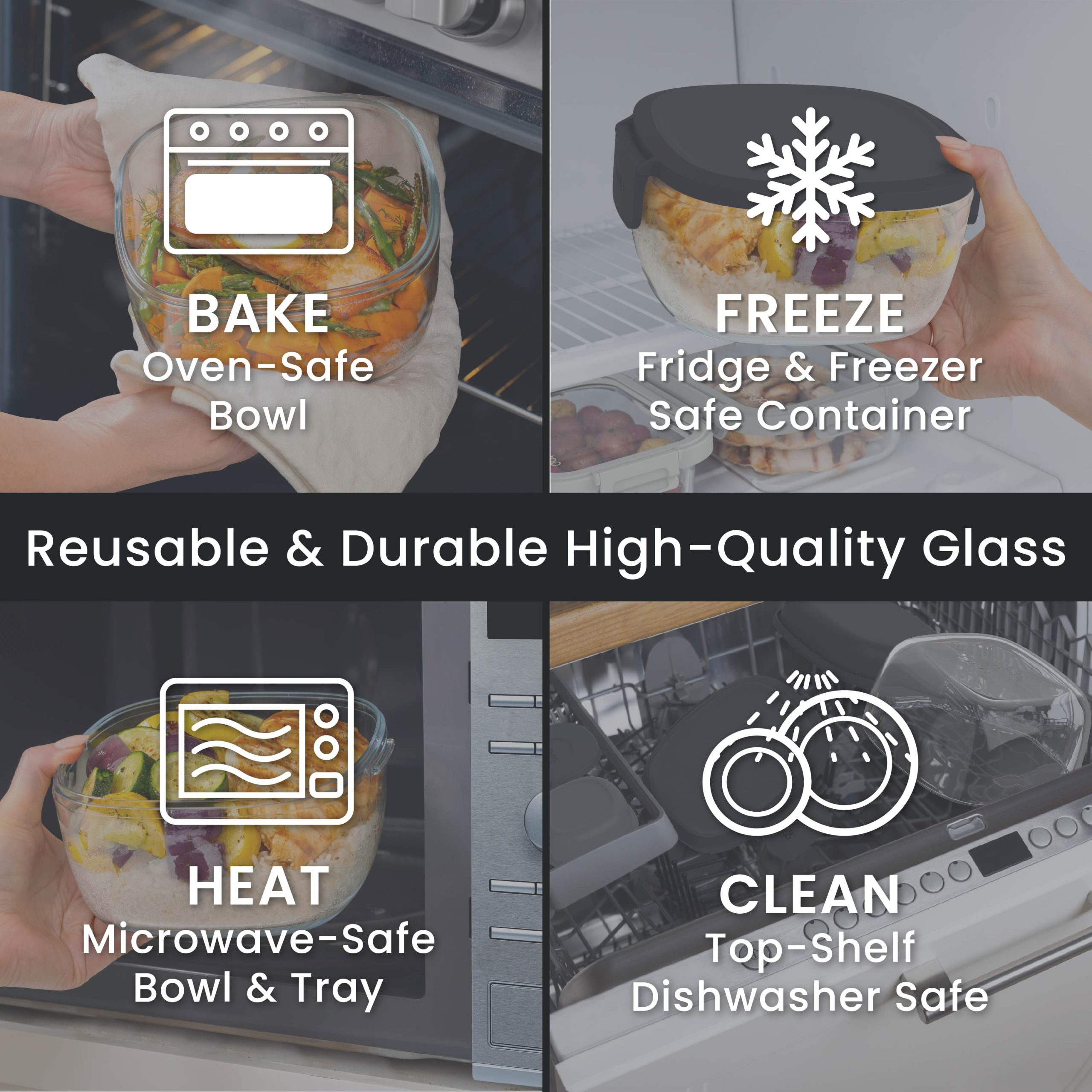 - Reusable & Durable: Made with high-quality. BPA-free materials. the stain-resistant glass salad bowl is safe for everyday use and easy to clean; with all parts being top-shelf dishwasher safe. It’s the travel-friendly pick for meal prep and leftovers.