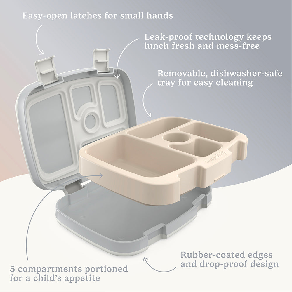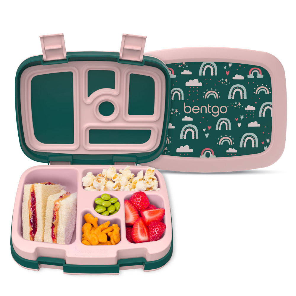 Give your kid’s lunch box a fun and stylish makeover with the expressive one-of-a-kind patterns from Bentgo Kids Prints Lunch Box. With five portion-perfect compartments. it organically inspires parents to pack a more wholesome. balanced lunch for growing kids to take and enjoy at school. the park. and more. Pack everything from a half sandwich or wrap. fruits and veggies. snacks. dip. or dessert. The best part is that this leak-proof lunch box allows you to pack saucy foods like applesauce. yogurt. hummus. and more without the mess! Built to last. it also features two kid-friendly latches to keep meals fresh and rubber-coated edges to protect the lunch box when dropped. The removable compartment tray is microwave-safe. top-shelf dishwasher-safe. and all components are made with PFAS & BPA-Free. food-safe materials.?