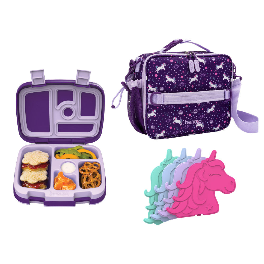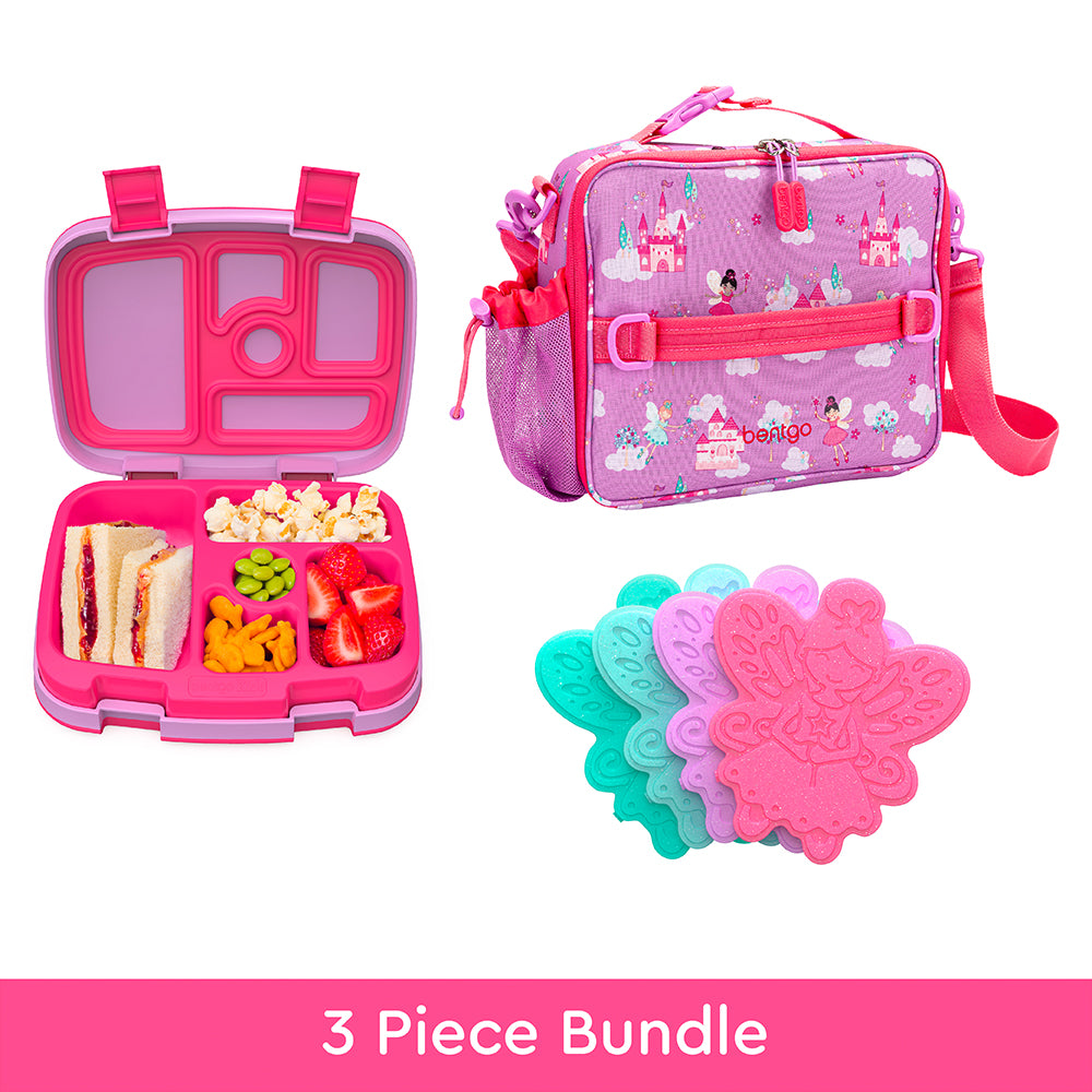 Give your child’s lunchtime a fun and stylish makeover with Bentgo Kids Prints Lunch Box. Lunch Bag. & Ice Packs. This bundle contains one Bentgo Kids Prints lunch box. one Bentgo Kids Prints lunch bag. and 4 reusable ice packs in coordinating shapes and colors.