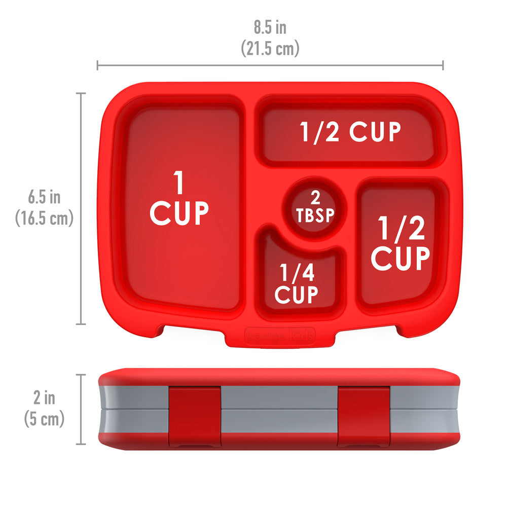Compartment Capacity: Left: 1 cup; Back: 1/2 cup; Right: 1/2 cup; Front: 1/4 cup; Sauce: 2 tbsp