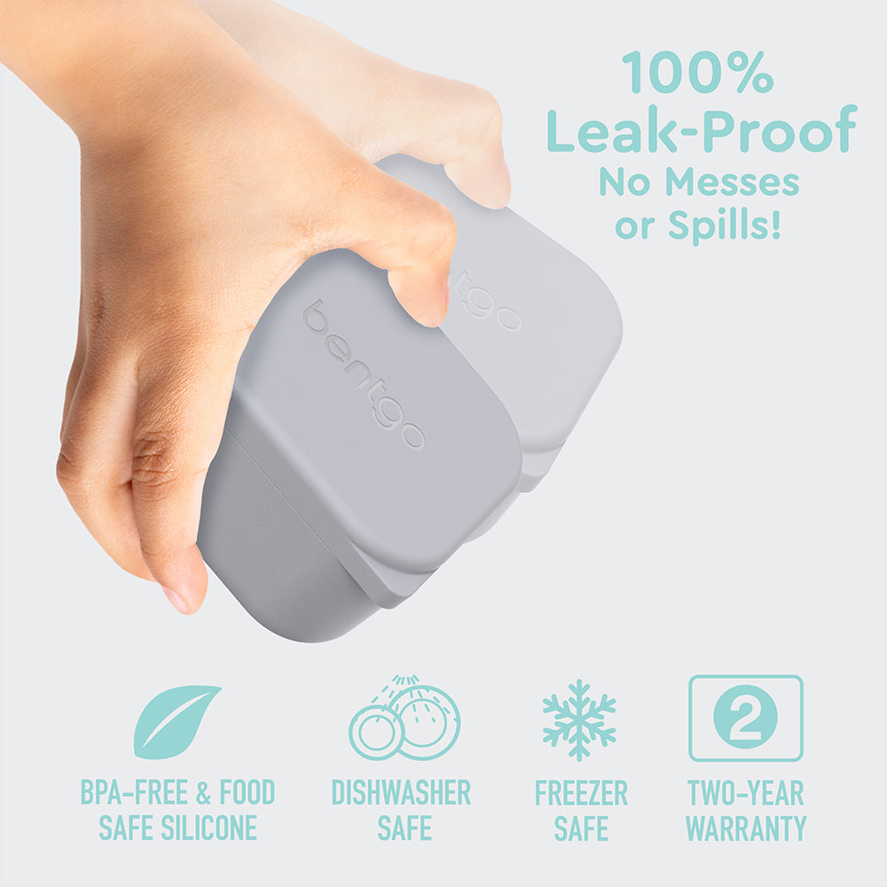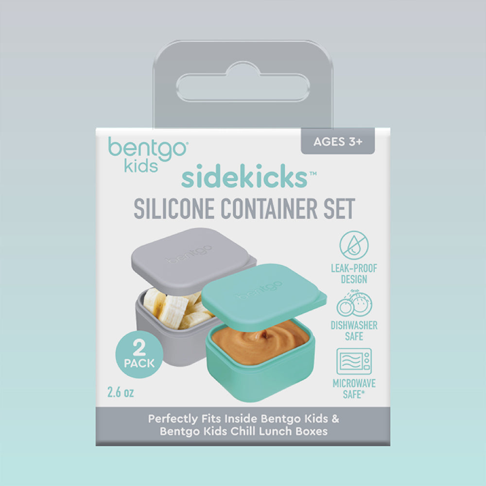 Bentgo Kids Sidekicks is a 2-pack leakproof silicone container set that’s a must-have accessory to your Bentgo Kids and Bentgo Chill lunch boxes! These mini storage cups are designed to neatly pack dips. dressings. and more inside your favorite lunch boxes for extra mealtime organization. While they’re great to use to separate liquids inside your lunch box. these containers are also great to use on their own for small snacks such as fruits. nuts. or crackers. Bentgo Sidekicks are food-safe silicone so they’re conveniently microwave. dishwasher. oven. and freezer safe. You can even use them to freeze purees or ice cubes! It’s the perfect versatile food storage container for all ages.?