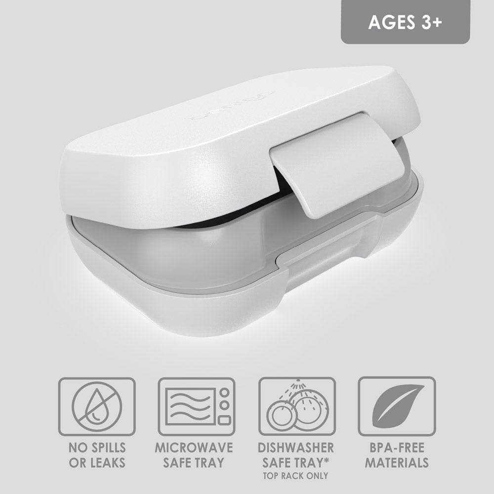 Make packing snacks fun. easy. and mess-free with Bentgo Kids Snack. a reusable 1.5-cup (12 oz) bento-style snack container! Perfectly sized for kids. it features two divided compartments (1 cup & ? cup) to keep dry or wet foods fresh and separate ?C great for fruits. veggies. crackers. applesauce. or yogurt. This BPA-free. lightweight box fits neatly in backpacks and lunch bags and features a durable. leakproof seal to prevent spills during daycare. school. travel. or on-the-go. The easy-to-open single-latch design is kid-friendly yet secure. and cleanup is a breeze for parents thanks to its dishwasher-safe tray. Make snack time fun and stress-free wherever you go!