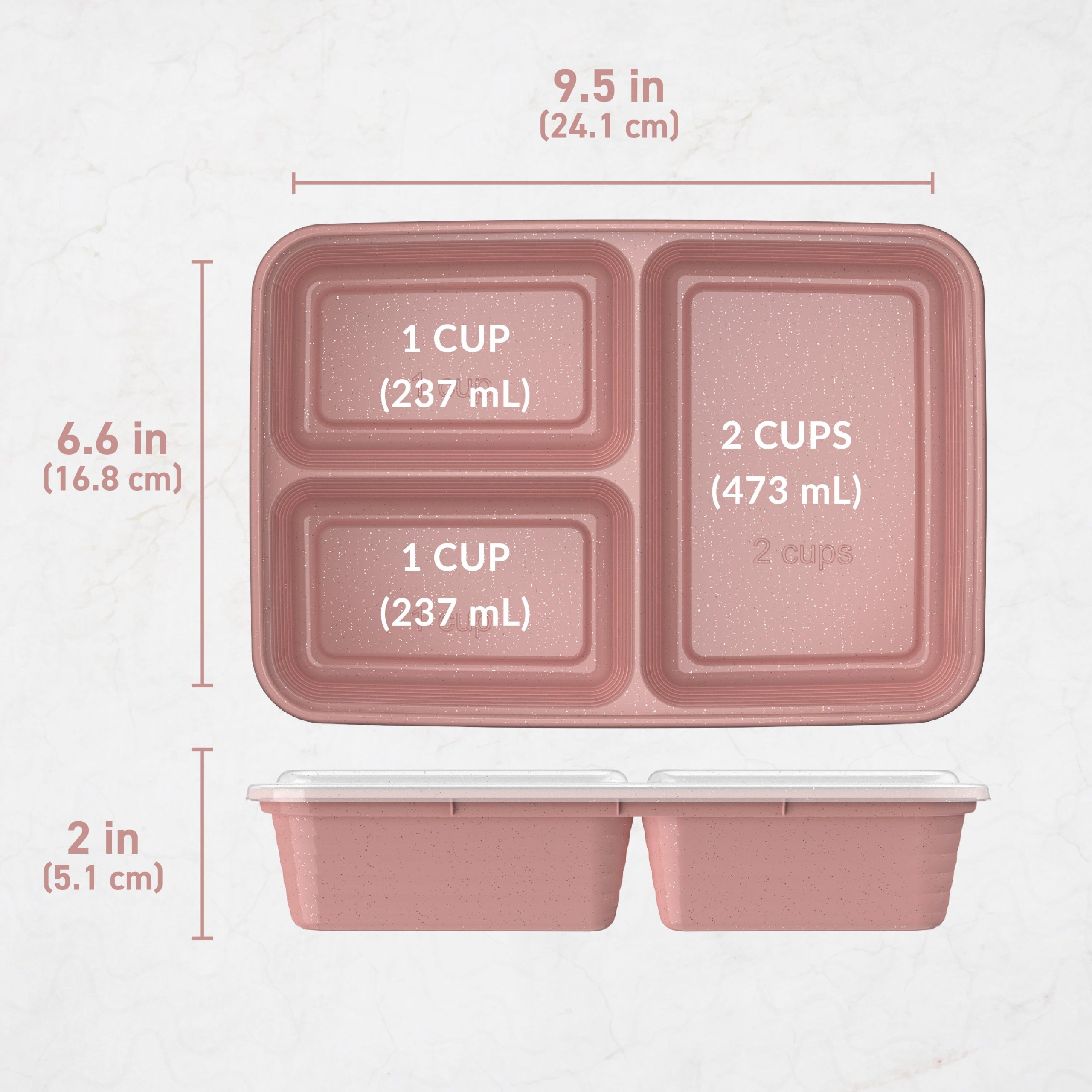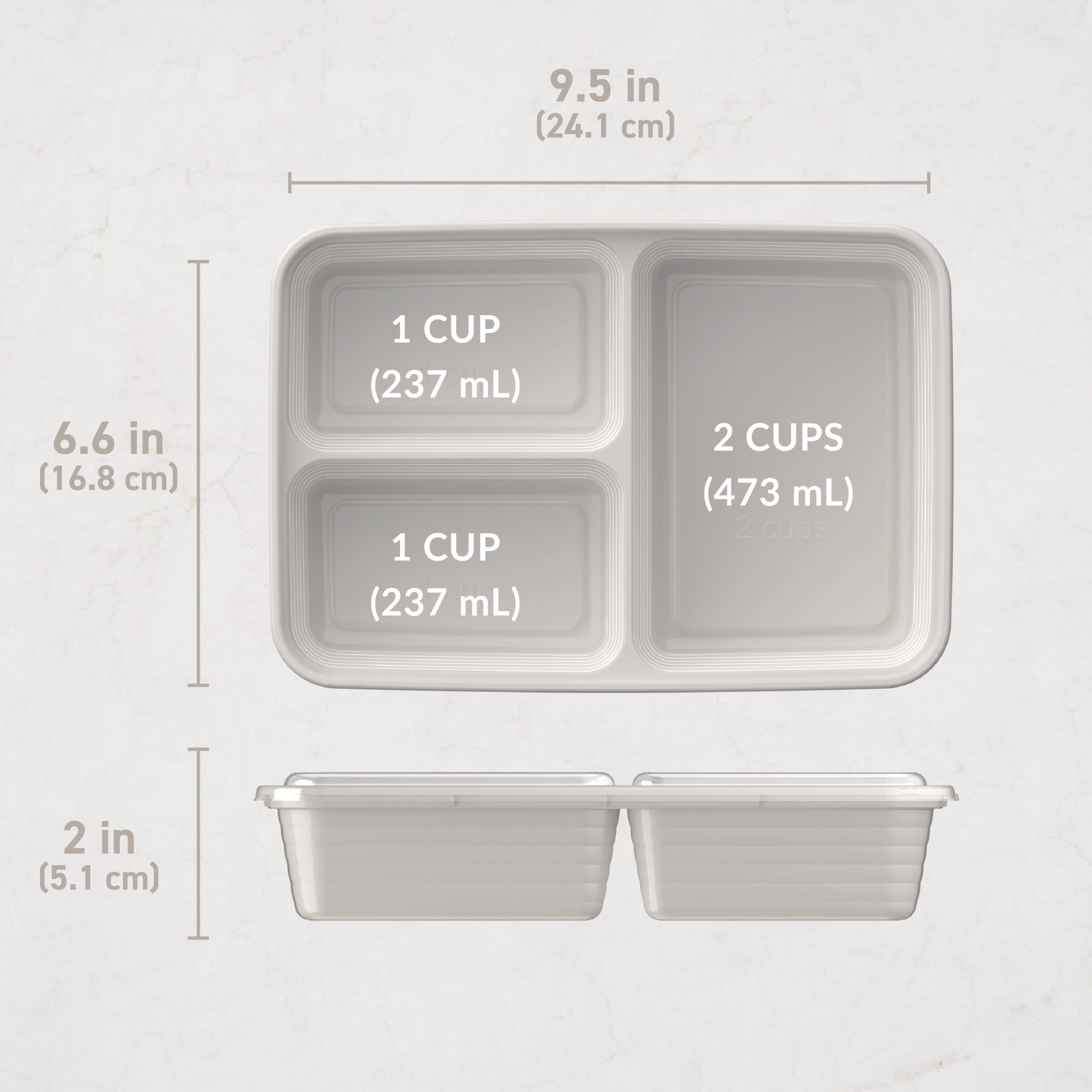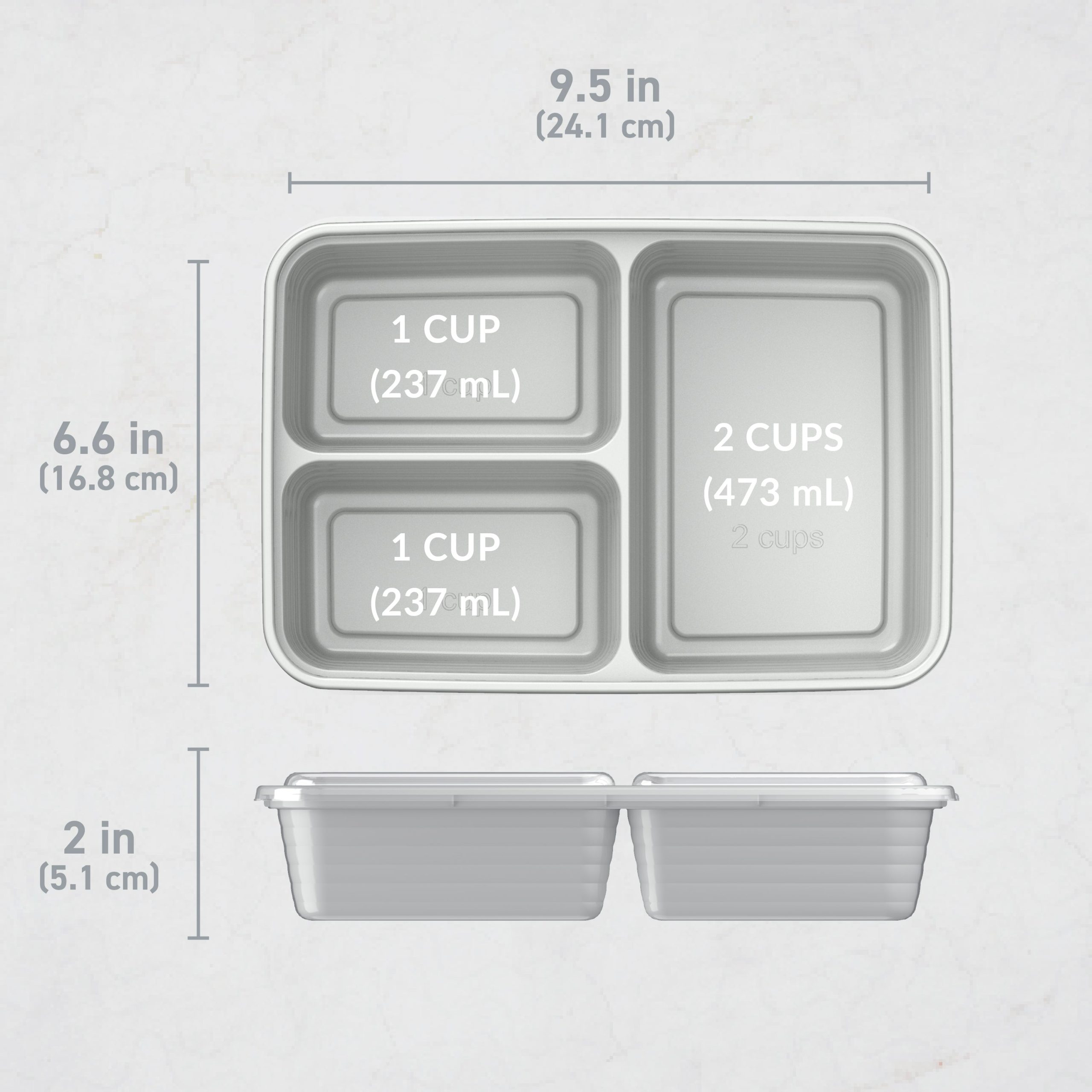 - 2 Small Compartments Capacity: 1 cup ??8 fl oz ?? 473 ml