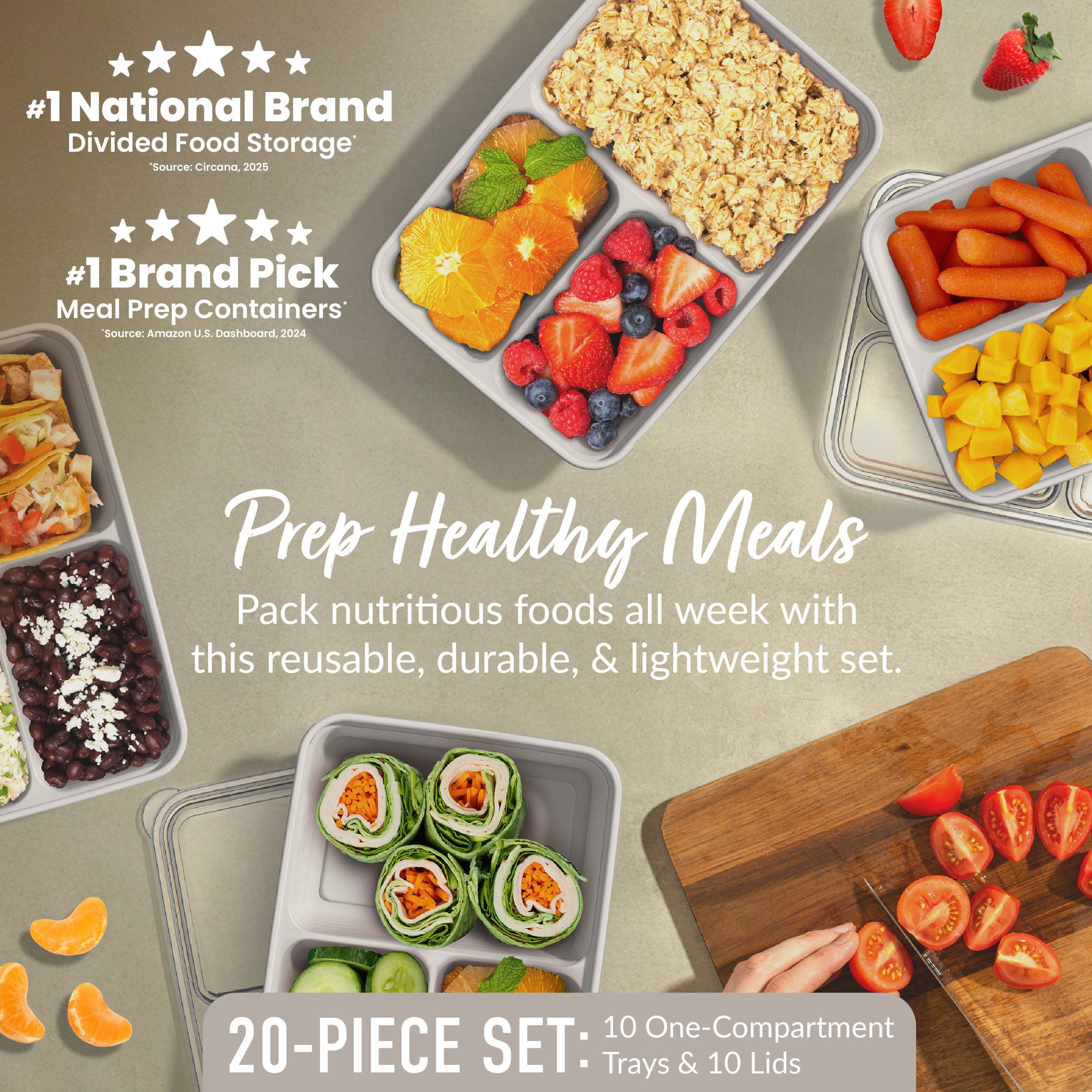 - What You Get: 10 three-compartment trays. 10 custom-fit lids. and caring customer support.