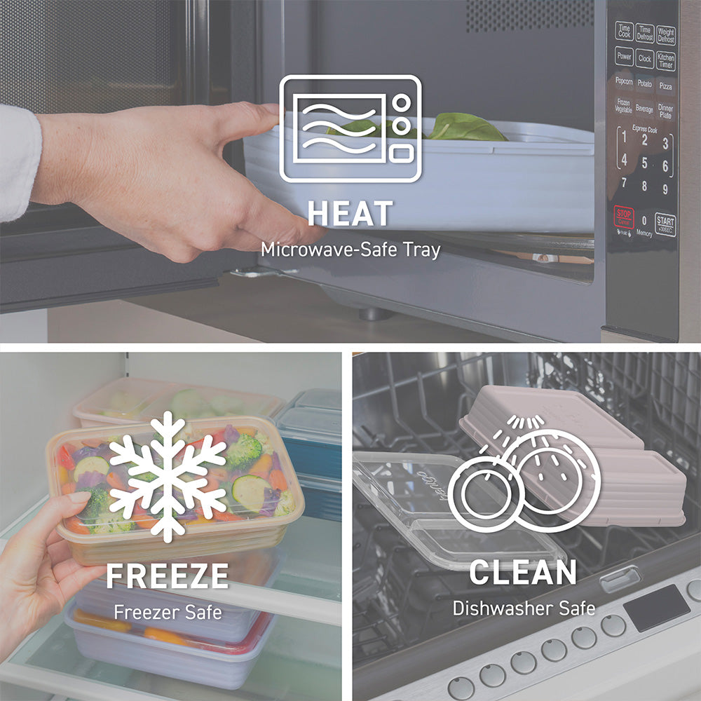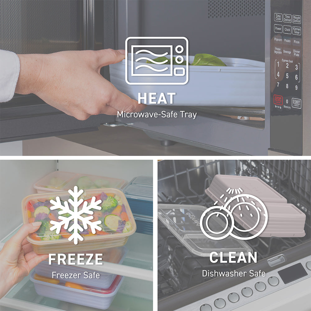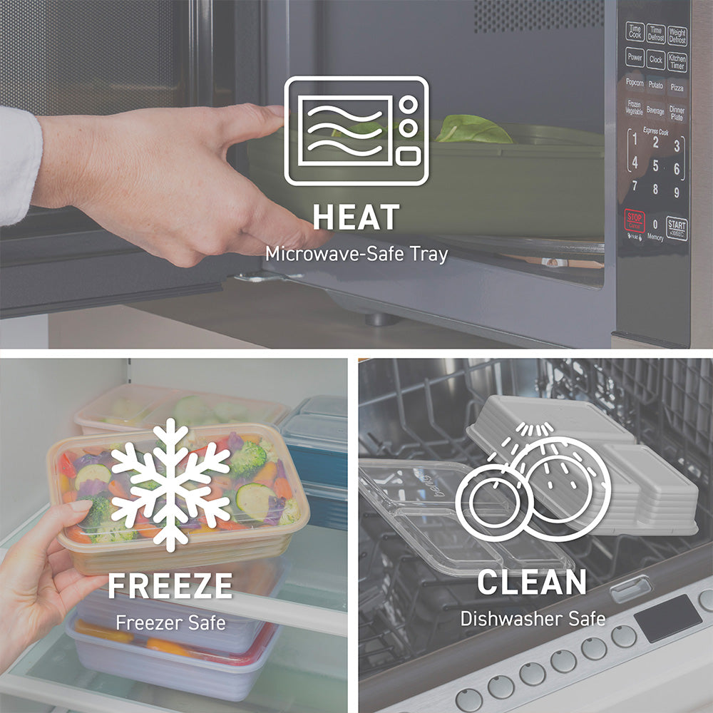 - Easy to Heat & Clean: Safely heat up your food straight from the freezer or refrigerator for warm. delicious meals and leftovers. Each meal prep container is both microwave and top-shelf dishwasher safe. Note: before microwaving. open the lid corner to allow steam to vent. For best results. hand wash to extend the life of the product.